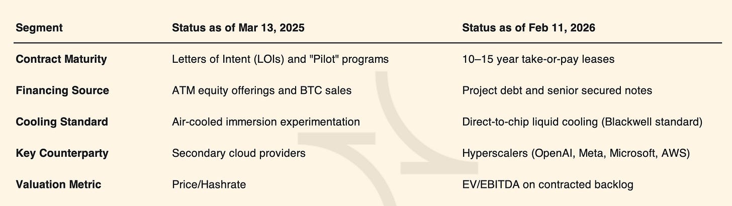 Nearly one year ago, we published our initial thesis on this shift, outlining the signs of Bitcoin miners pivoting toward AI data center infrastructure: