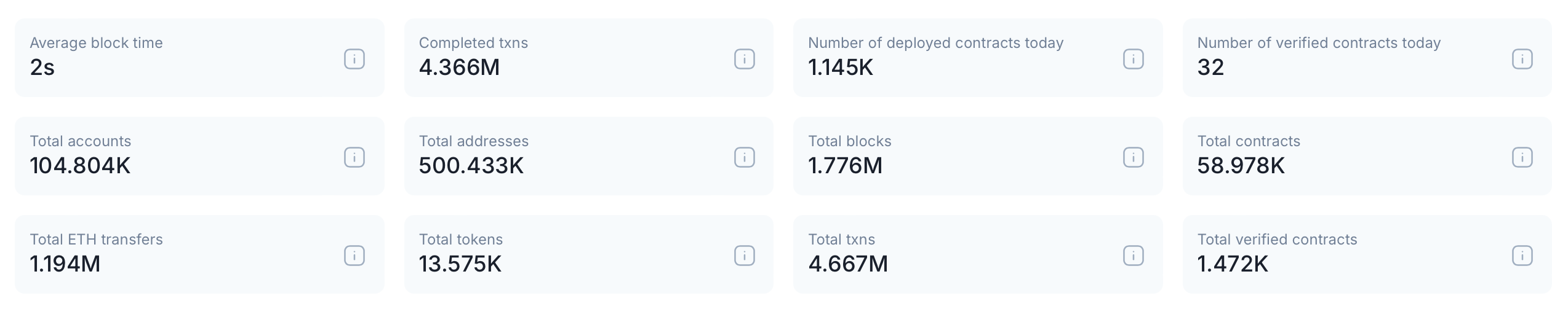 Charts and statistics on network activity, aiding developers and users in optimizing transactions.